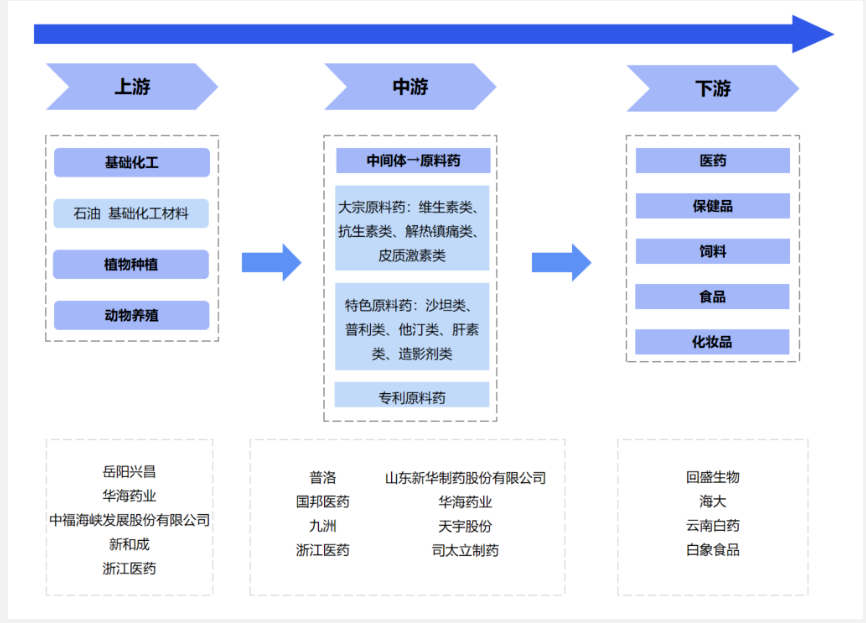 从参与企业来看,上游以中国石化、恩捷股份、荣盛石化等传统石化企业为主,市场集中度高,份额供给较为稳定;中游为精细化工制造企业,专业性强化,细分程度较高,比如新和成主营医药精细化工产品,联化科技以农药精细化工产品为主;下游行业主要是成品领域经营商,比如宝洁日化、浩业医药等。